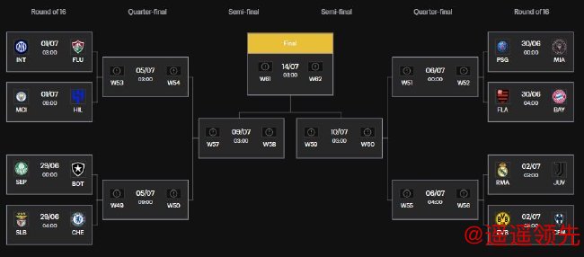 北京时间6月27日,世俱杯小组赛鸣金收兵,16强对阵也正式出炉!非洲球队全军覆没,腾龙娱乐星空体育亚洲球队仅剩利雅得新月一支独苗。就实力而言,下半区平均水平明显高于上半区,大巴黎、拜仁、尤文、皇马、多特齐聚造死亡半区!