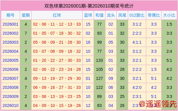 双色球2026011期综合推荐: